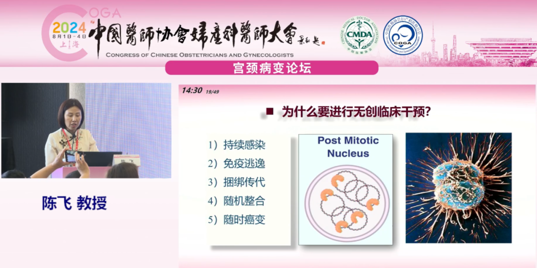 北京協(xié)和醫(yī)院陳飛教授就《清除高危HPV無(wú)創(chuàng)臨床干預(yù)》為題進(jìn)行報(bào)告: