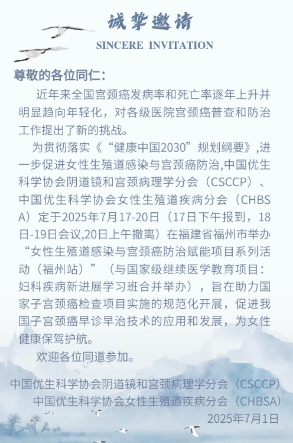 2025 年 7 月 17 日至 20 日,由中國優(yōu)生科學(xué)協(xié)會陰道鏡和宮頸病理學(xué)分會(CSCCP)、中國優(yōu)生科學(xué)協(xié)會女性生殖道疾病分會(CHBSA)主辦的 “女性生殖道感染與宮頸癌防治賦能項目系列活動(福州站)” 將在福建省福州市召開。該活動與國家級繼續(xù)醫(yī)學(xué)教育項目 “婦科疾病新進(jìn)展學(xué)習(xí)班” 合并舉辦,旨在助力國家子宮頸癌檢查項目規(guī)范化實(shí)施,促進(jìn)宮頸癌早診早治技術(shù)應(yīng)用與發(fā)展,為女性健康保駕護(hù)航。經(jīng)確認(rèn),中藥制劑派特靈受邀出席,將參與女性下生殖道人乳頭瘤病毒(HPV)感染及相關(guān)疾病專家共識解讀環(huán)節(jié)。