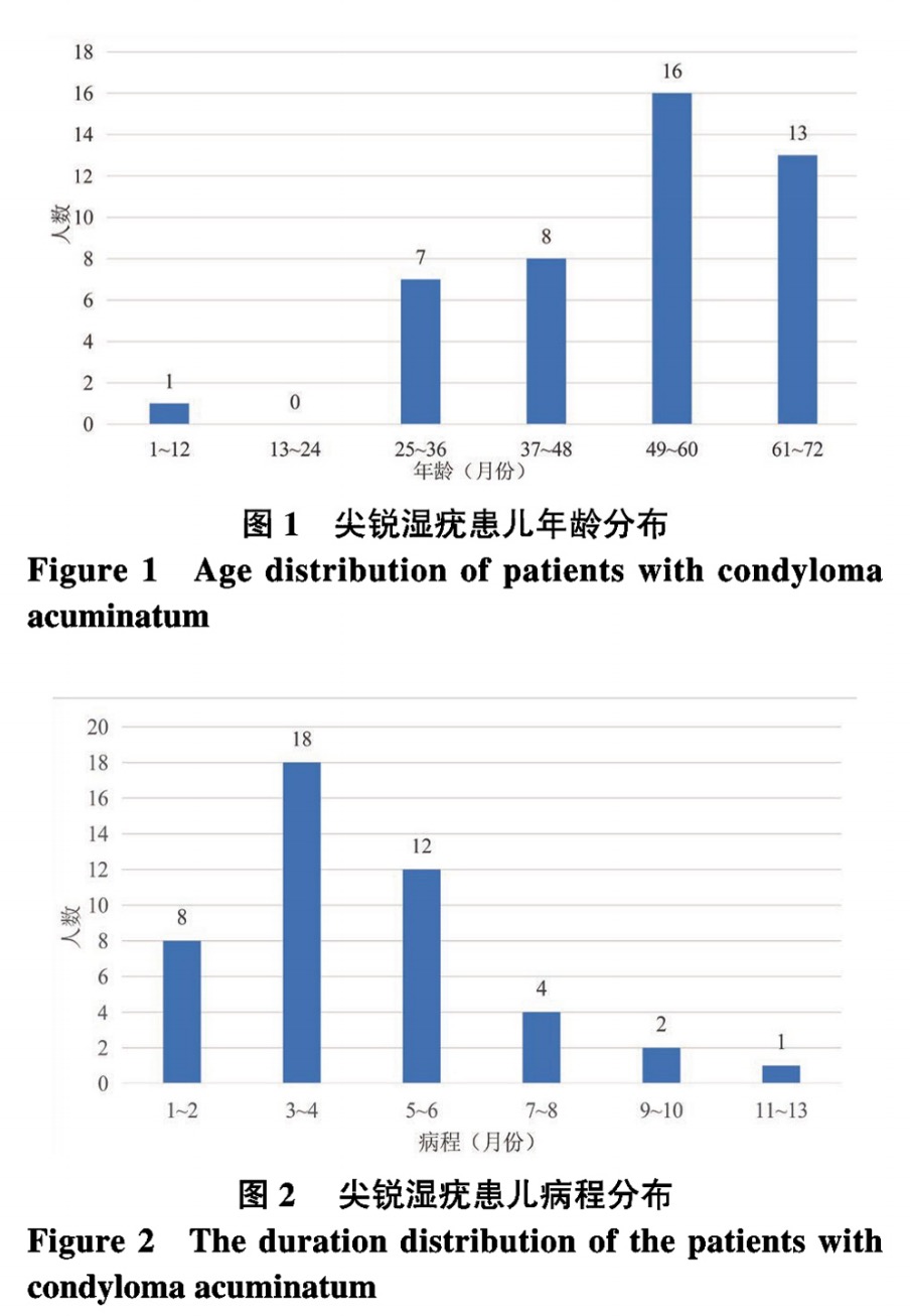 選取2015年1月——2020年12月于西南醫(yī)科大學(xué)附屬醫(yī)院皮膚科門(mén)診診治的45 例尖銳濕疣患兒為研究對(duì)象。